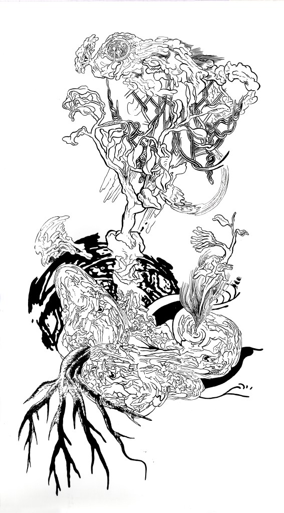 Nahuel Rando – Autonomía del Crecimiento, Tinta China sobre papel, 44 x 78 cm