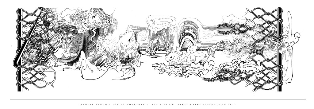 En una mezcla de dibujo, obra digital, video e historieta, se encuentra la obra de Nahuel Facundo Rando. Encrucijada de técnicas que le permiten al autor expresar en imágenes el entorno circundante y la problemática actual. Desequilibrios, choques de fuerzas, lo conocido y lo que aún no lo es, se expresan en tono confuso, con un ritmo vertiginoso en el plano y en el tiempo de su obra.