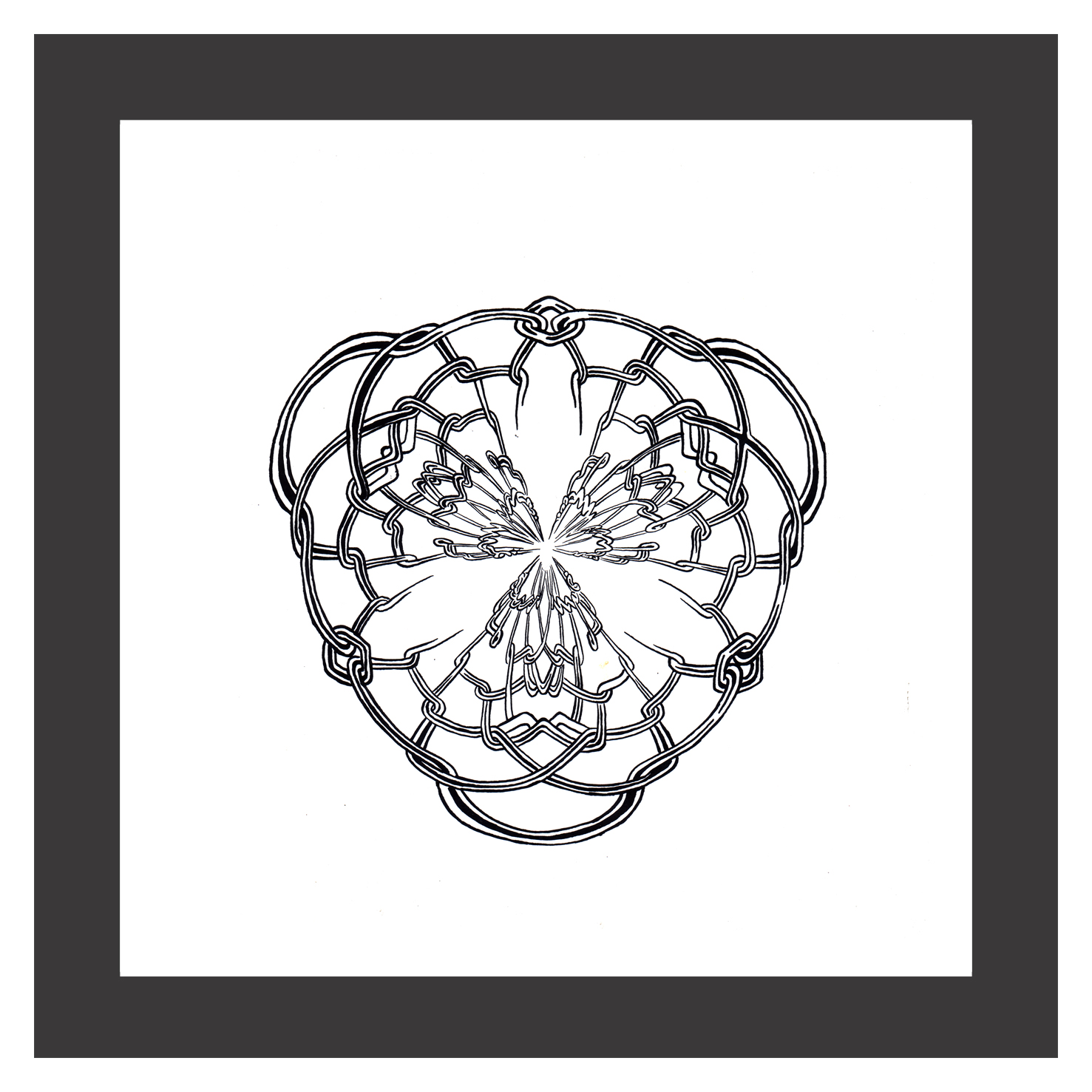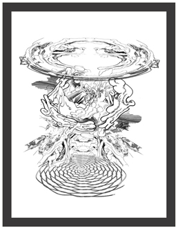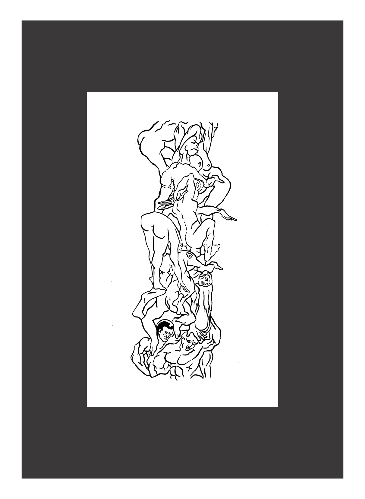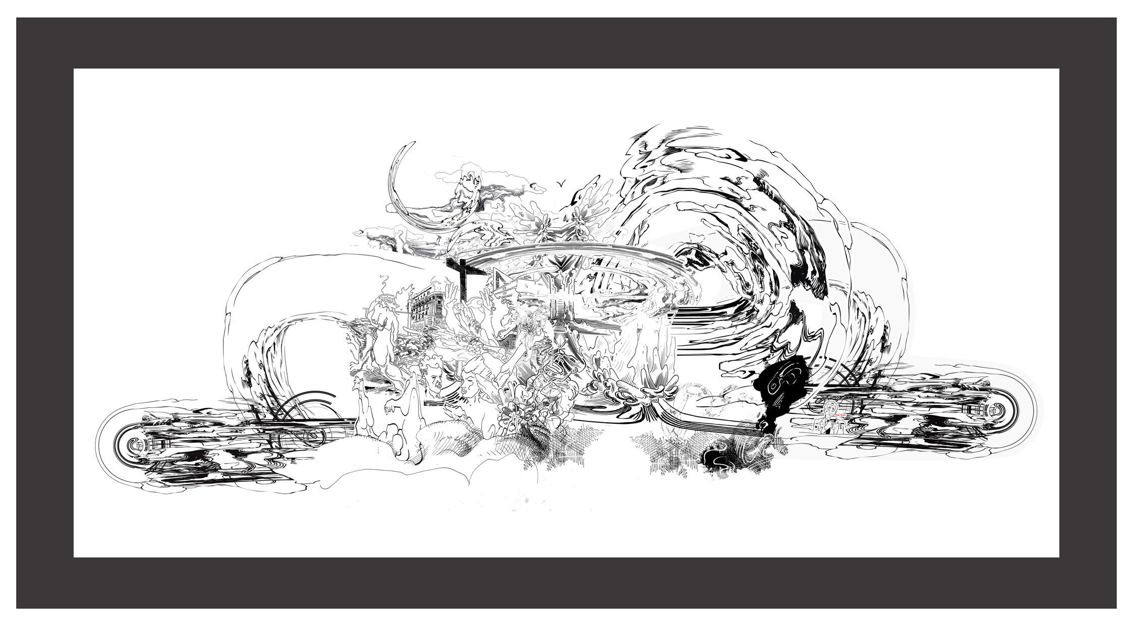Cuando hablo de madurez en su obra no sólo lo digo por la originalidad del planteo sino porqué combina todas sus experiencias como diseñador desde la historieta hasta los procedimientos digitales como gráficos en términos generales añadiendo una visión que ha ido elaborando en este proceso. Refiriéndome concretamente a sus dibujos de tinta china sobre papel creo que son hijos de un enriquecimiento subjetivo digital que ha tenido, y respecto a los confesados como tales son fruto de la experiencia de la mano dibujando, y, sobre todo, de su sorpresa ante el mundo en el que vive. Esta sorpresa la trasladó al espectador.